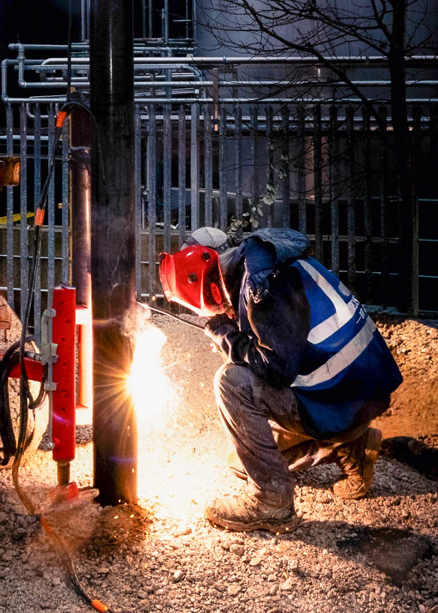 Specialist piling equipment has been used to install 150 mm diameter driven piles, which extend between 6 and 8 metres below ground level. These piles are driven until they reach the required resistance to safely support the building above.